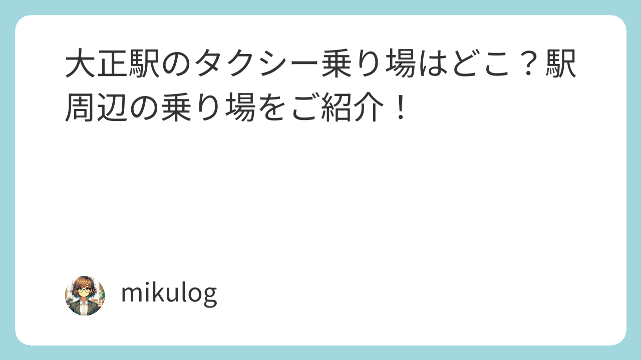 大正駅には専用タクシー乗り場は設置されていません。イベント時や悪天候時は特に利用しづらくなることがあるため、配車サービスを活用するなど、状況に合わせた移動手段を検討することが大切です。