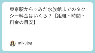 東京駅(丸の内・八重洲)からすみだ水族館(墨田区・押上)へタクシー移動する際の、距離・時間・料金の目安を分かりやすくまとめました。東京スカイツリータウン内にある都市型水族館で、ペンギンやクラゲ展示が人気です。料金・時間の目安以下は昼間・一般...