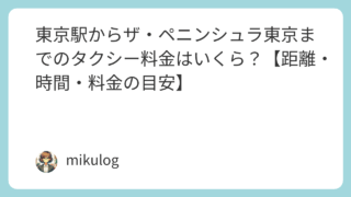 東京駅(丸の内・八重洲)からザ・ペニンシュラ東京(千代田区・日比谷)へタクシー移動する際の、距離・時間・料金の目安を分かりやすくまとめました。世界的に有名な高級ホテルで、皇居外苑を望むロケーションと極上のホスピタリティが魅力です。料金・時間...